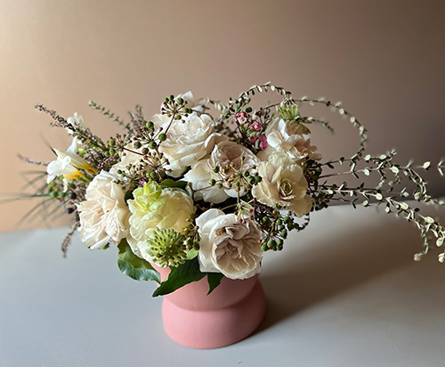 Our Neutral Bouquet is the perfect choice. Featuring soft whites, creamy tones, and delicate greens, this arrangement brings effortless sophistication to any space.